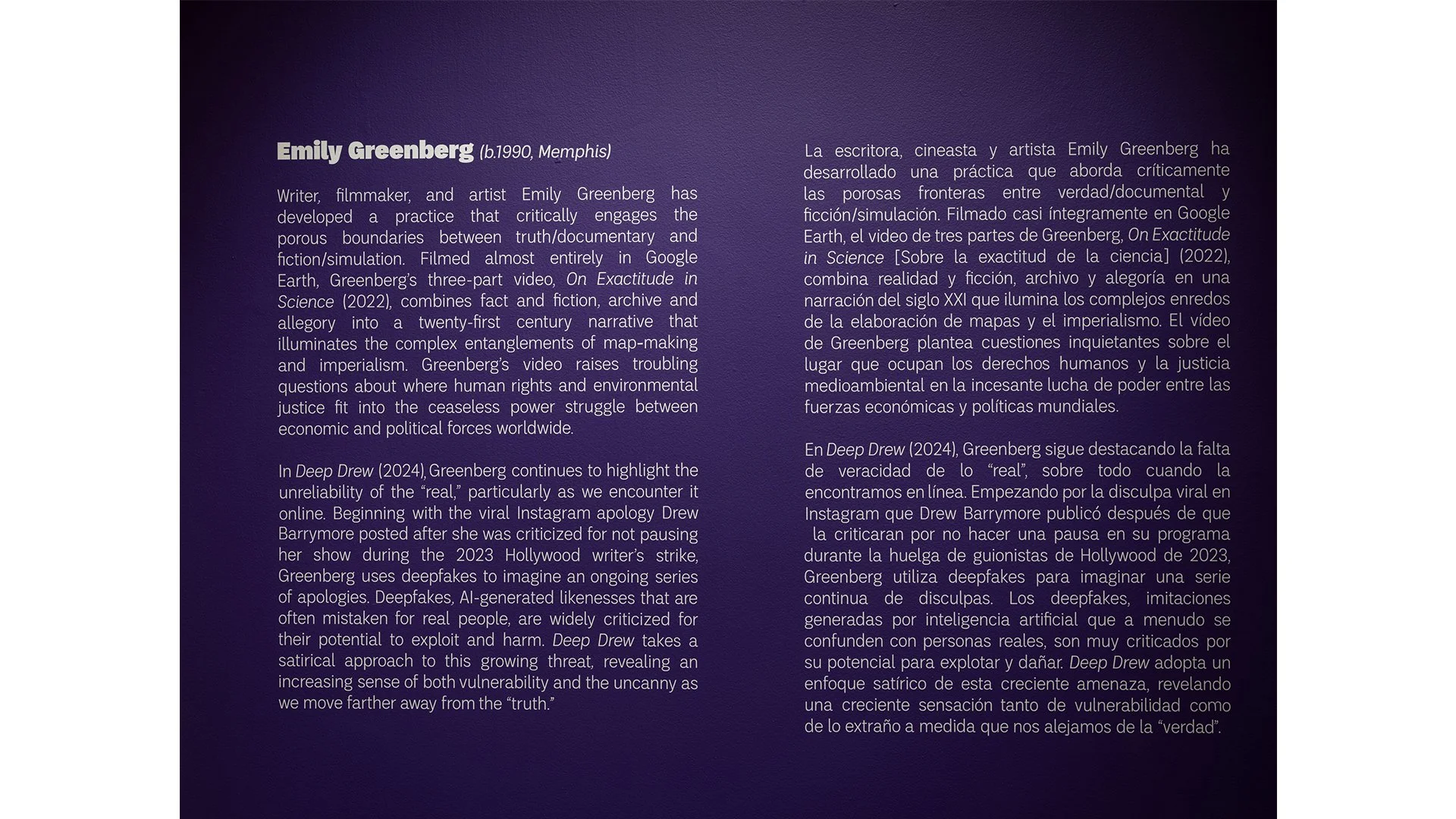 The 2025 iteration of NextGen is distinguished by its critical spirit. Some of the artists included, such as Nanzi Muro, take direct aim at systemic injustices, calling into question current power structures, including color in graduate school. While Nykelle DeVivo’s video works propose a path for liberation based in Black anarchist traditions, Emily Greenberg and Maddie Butler both interrogate technology as a powerful mediating force, considering the effects of device-obsession, social media, and AI on truth, reality, identity and relationships. Coralys Carter, Adele Gaburo, and Maya Rosado take up the politics of womanhood. Carter moves fluidly through time, connecting memory and identity through the body and its sculptural translation, while Gaburo’s visceral confrontation with body dysmorphia creates space for honest discussion. Through her photographs, Rosado preserves knowledge of Indigenous womb work, celebrating ancestral practice while proposing expanded, inclusive conceptions of women’s healthcare.